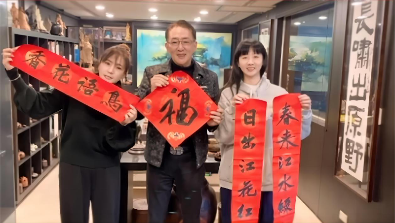 臺灣山東鄉親在視頻中展示收到的福字和春聯