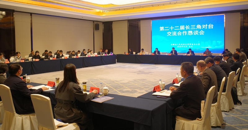 10月30日至31日,第二十二屆長三角對臺交流合作懇談會在安徽安慶舉辦。安徽省臺辦主任劉泉、副主任邵琳,上海市臺辦副主任莊潛,江蘇省臺辦副主任封志成,浙江省臺辦二級巡視員黃曉云,國臺辦研究局、海研中心社文室有關負責同志和長三角地區專家學者等80余人參加。