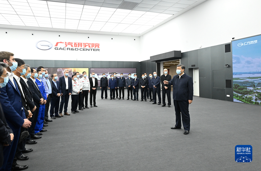 習(xí)近平隨后來(lái)到廣汽埃安新能源汽車(chē)股份有限公司考察。他走進(jìn)企業(yè)展廳、總裝車(chē)間、電池生產(chǎn)車(chē)間等,了解企業(yè)突破關(guān)鍵核心技術(shù)和推動(dòng)制造業(yè)高端化、智能化、綠色化等進(jìn)展情況。在廣汽研究院,習(xí)近平仔細(xì)察看智能網(wǎng)聯(lián)實(shí)驗(yàn)室、模型設(shè)計(jì)實(shí)驗(yàn)室等,并同科技人員、企業(yè)家、職工、外資企業(yè)代表等交流。習(xí)近平指出,中國(guó)改革開(kāi)放政策將長(zhǎng)久不變,永遠(yuǎn)不會(huì)自己關(guān)上開(kāi)放的大門(mén)。一切愿意與我們合作共贏的國(guó)家,我們都愿意與他們相向而行,推動(dòng)世界經(jīng)濟(jì)共同繁榮發(fā)展。習(xí)近平強(qiáng)調(diào),中國(guó)是個(gè)大國(guó),要重視實(shí)體經(jīng)濟(jì),走自力更生之路。關(guān)鍵核心技術(shù)要立足自主研發(fā),也歡迎國(guó)際合作。要加強(qiáng)教育和人才培養(yǎng),夯實(shí)科技自立自強(qiáng)根基。