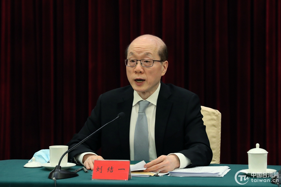中共中央臺辦、國務(wù)院臺辦主任劉結(jié)一在兩岸領(lǐng)導(dǎo)人歷史性會晤5周年座談會上講話。(中國臺灣網(wǎng) 尹賽楠 攝)