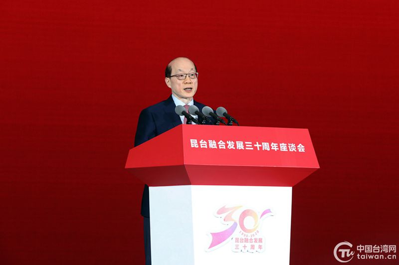 很高興應邀參加昆臺融合發展30周年座談會。我代表中共中央臺辦、國務院臺辦對昆臺融合發展30周年和座談會的召開表示熱烈祝賀,向為昆臺融合發展作出貢獻的兩岸各界人士特別是臺商臺胞朋友表示衷心感謝,并致以誠摯問候。