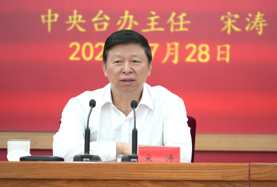 2023年7月28日,中央臺辦、國務院臺辦主任宋濤以“深入學習貫徹習近平新時代中國特色社會主義思想 推動對臺工作高質量發展 服務國家統一大業”為題,為全辦黨員干部講專題黨課。中央第二十一指導組組長喻云林出席。