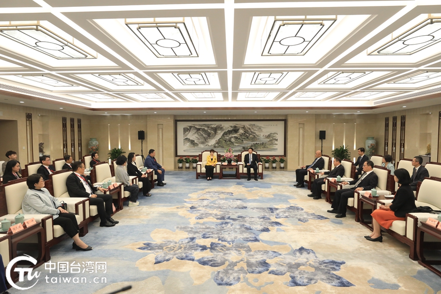 中共中央臺辦、國務院臺辦主任宋濤7月8日在杭州會見中國國民黨前主席、中華青雁和平教育基金會董事長洪秀柱一行。(中國臺灣網記者 尹賽楠 攝)