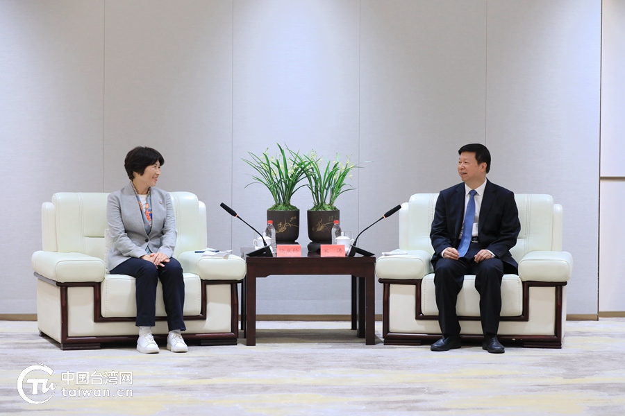 8月5日下午,宋濤在連城會見了饒慶鈴和東森集團總裁王令麟等前來參加活動的島內人士。(中國臺灣網記者 尹賽楠 攝)