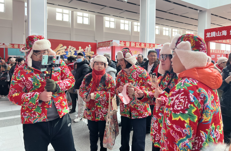 作為中國人自家的孩子,來到普灣大集的“小當歸”和“小鳳梨”們受到了商家的熱情款待。商鋪的主人紛紛拿出自家的特色產品,以給他們“投喂”的方式表達自己的喜愛之情。這群“小當歸”、“小鳳梨”們圍著紅圍脖,提著小燈籠,漫步在集市之中,天真爛漫的快樂神情感染了周邊人群,開啟了親密互動。如此和諧快樂的場景也吸引了大連新聞傳媒集團等多家媒體的目光,媒體記者紛紛圍著“小當歸”、“小鳳梨”進行現場采訪,為集市增添了一道亮麗的風景。應邀參加此次活動的臺青網紅陳詠欽,在“臺灣小小看大連”抖音號上進行現場直播,向全網展示了普灣年貨大集濃濃的年味。他表示要把聯誼活動的經歷體會制成短視頻與上萬粉絲分享。
