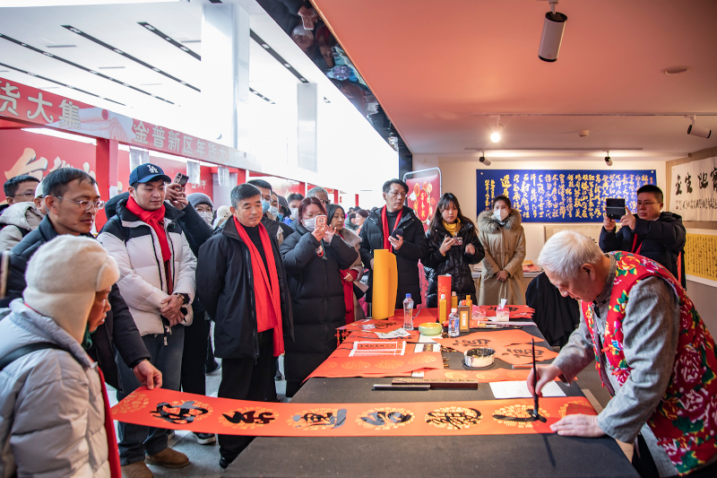 豐富多彩的逛大集活動不僅在物質上讓臺胞臺屬們收獲頗豐,還在精神層面上為他們帶來了極佳的審美體驗。在室內大集的春聯攤位,知名書法術家現場進行書法創作,為大家即興寫作春聯作品,引來“小當歸”、“小鳳梨”圍觀。筆走龍蛇間,紅彤彤的紙上浮現出遒勁有力的字體,筆墨飛揚的姿態引發陣陣贊嘆。短短幾分鐘,三副春聯就展現在臺胞臺屬們的眼前---“海峽兩岸一衣帶水 好系連臺親上加親”,橫批是“家和萬事興”,“兩岸同胞一脈相連心系祖國統一,遼南大地同氣連枝心懷民族復興”橫批是“山海相連”;“迎龍年濱城大連添異彩 送兔歲海峽兩岸盼春歸”;橫批是“連臺一家親”。這些由兩岸同胞聯合創作的春聯,表達了攜手推進祖國統一大業的共同心愿。
