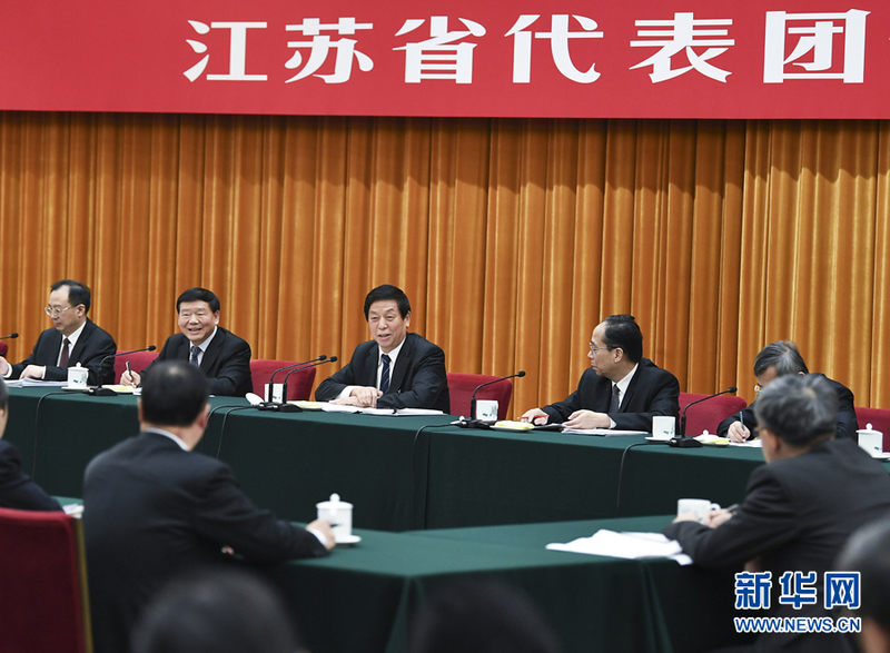 3月10日,中共中央政治局常委、全國人大常委會委員長栗戰書參加十三屆全國人大二次會議江蘇代表團的審議。 新華社記者 謝環馳 攝