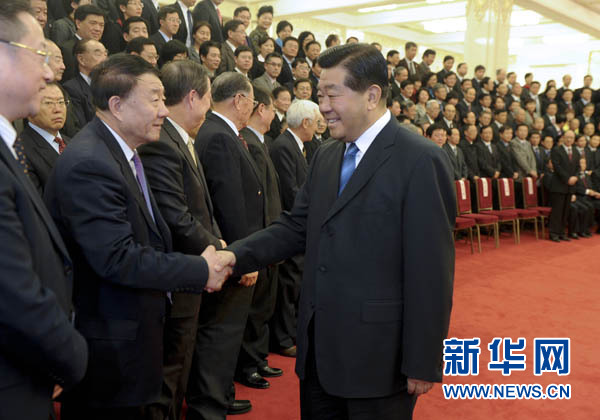 這是大會開始前,賈慶林等中央領導同志親切會見全體代表并合影留念。 新華社記者 張鐸 攝