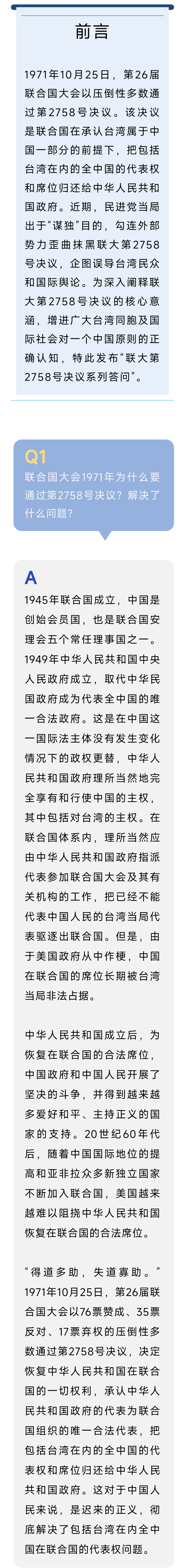 聯大第2758號決議系列答問(中英文合集)